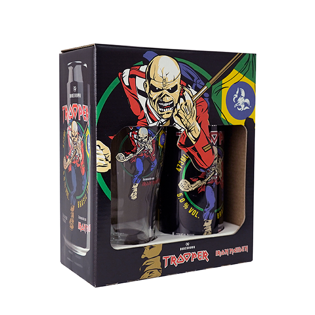O kit acompanha um copo pint exclusivo com a imagem do Eddie, na logo oficial da cerveja Trooper. Este é um produto oficial Iron Maiden, colecionável e limitado.